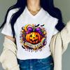 Tricou de Halloween Îmbrăcăminte pentru femei Scrisoare Moda pentru femei Desene animat cu mânecă scurtă Imprimare cu dovleac de Halloween Casual Moda versatilă