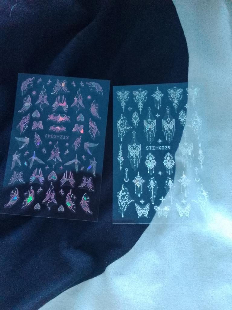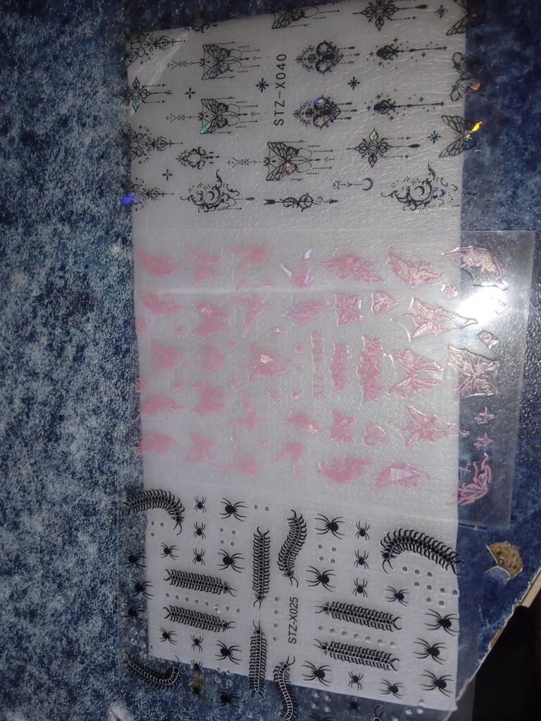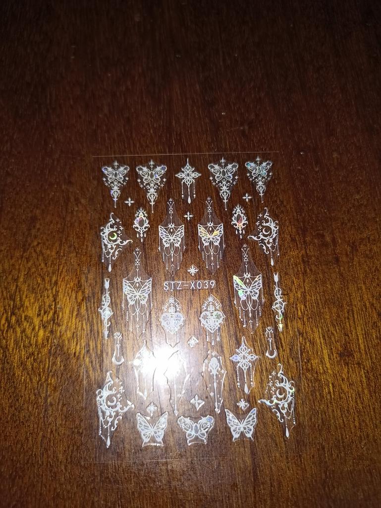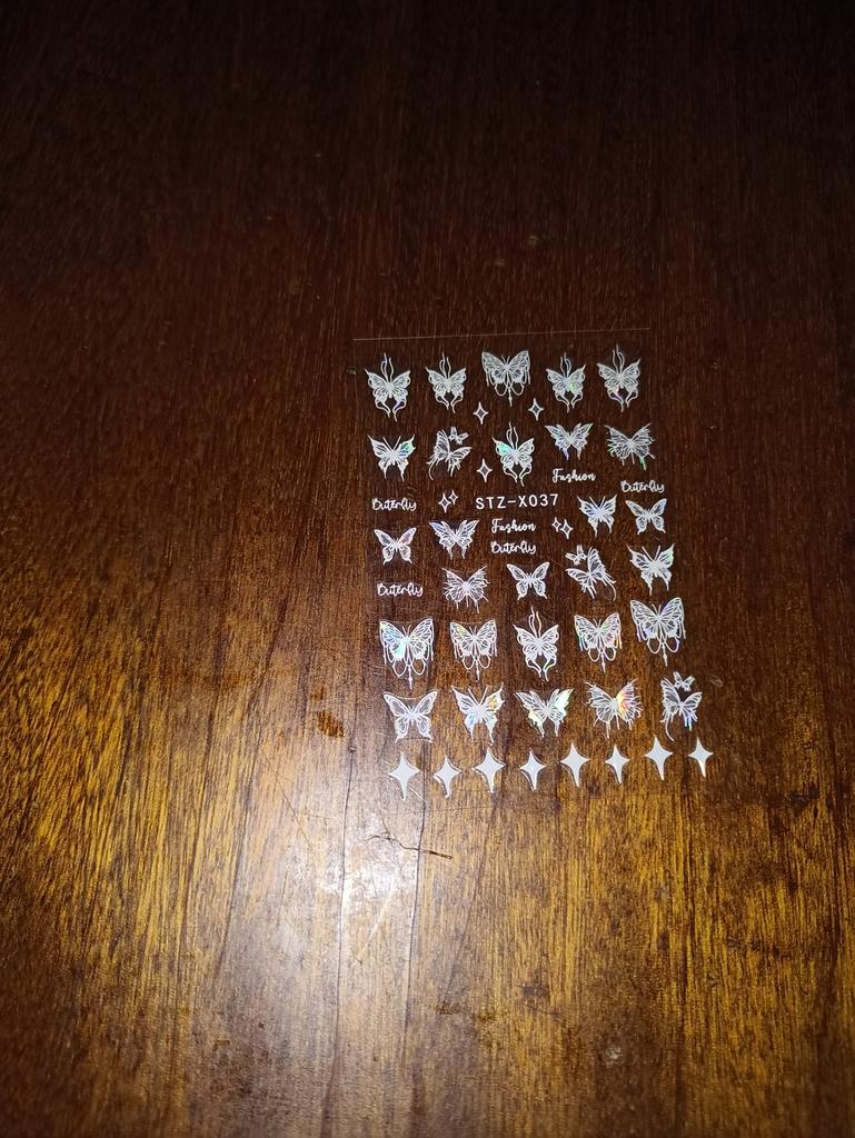 Stickere strălucitoare, frumoase, iridescente, puțin cam puține, în fotografie părea că sunt mai multe, arată foarte spectaculos pe unghii