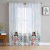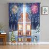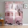 Om de zăpadă de Crăciun Scenă de zăpadă Casă roz Perdele transparente Decorațiuni pentru casă de Crăciun Perdele din tul pentru fereastră pentru sufragerie dormitor
