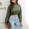 QICED Moda dame ocazional imprimeu culoare solidă toamnă iarnă cu mânecă lungă cu gât înalt pulovere largi