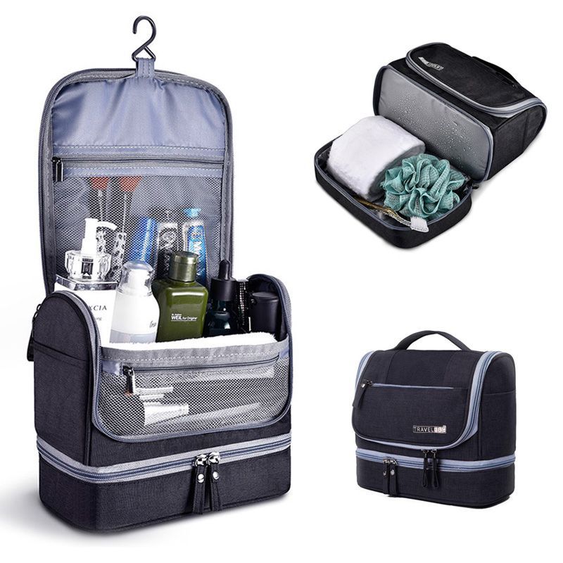 Geantă cosmetică Oxford impermeabilă 600D pentru femei Cârlig portabil Separare umedă uscată Geantă de depozitare pentru spălare cu două straturi în aer liber Organizator de călătorie pentru bărbați Husă de machiaj