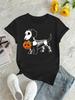 Tricou de damă la modă cu grafică pentru câine de Halloween, imprimat 3D, mânecă scurtă, îmbrăcăminte de vară supradimensionată din fibră de poliester