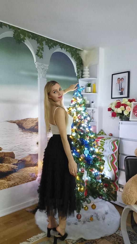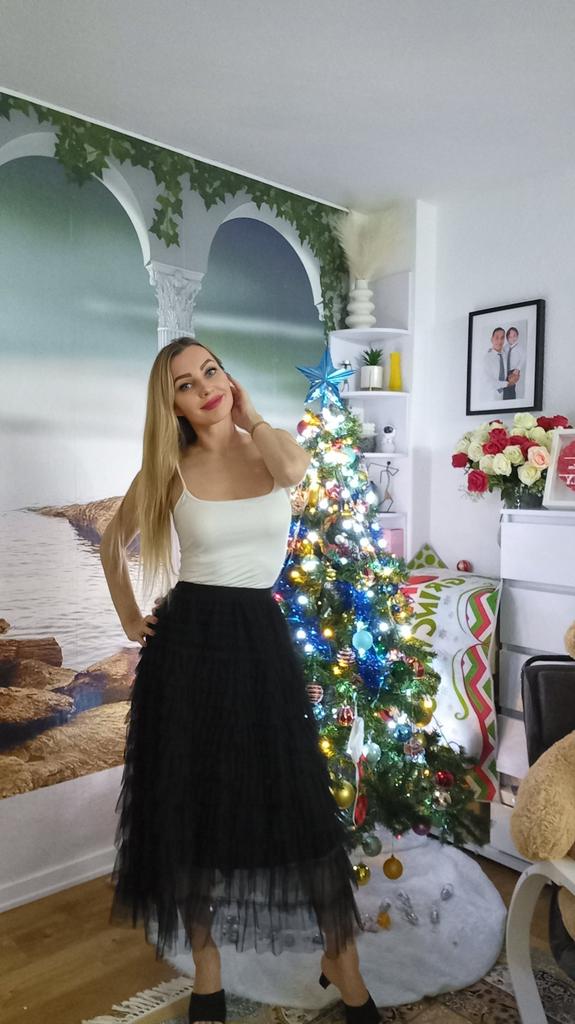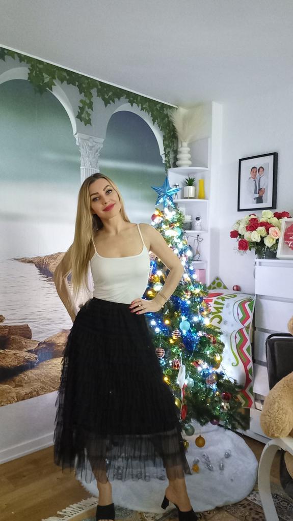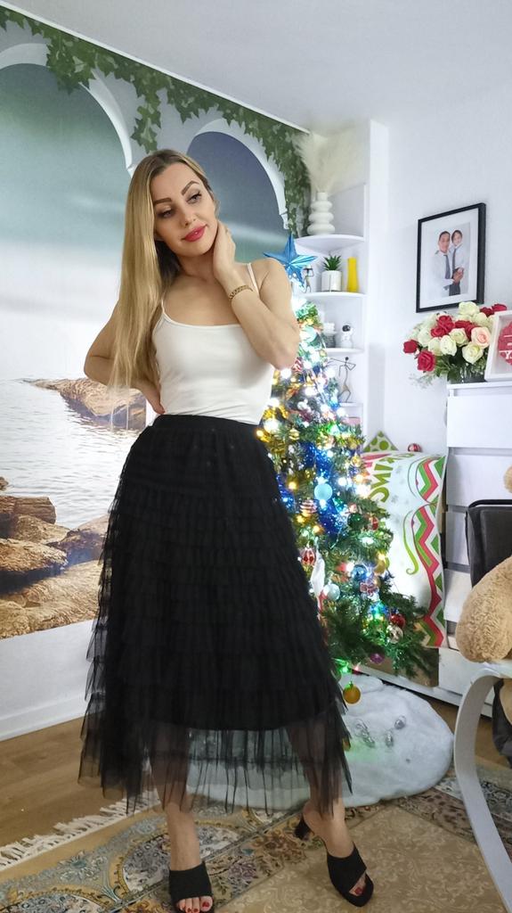 Fustă maxi midi minunată din tul cu volane🌼🌼🌼🌼🌼👍👍. 🔆Timp de livrare 🔆:24 zile în Germania. 🔆Conținutul livrării 🔆: În conținutul livrării este inclusă o fustă 👗 în culoarea corespunzătoare . Există 4 culori la alegere👌👌🥳. Este disponibilă doar într-o singură mărime universală. Fusta mi se potrivește perfect!🤗 În mod normal, port rochie mărimea 36(e). Cântăresc 53 kg răspândit pe 167 cm. Mi-am cumpărat fusta pe negru și culoarea este exact ca în imagine.. 🔆Calitate 🔆: Fusta este casual si opaca, cu banda elastica in talie. Fusta ajunge până la jumătatea gambei pe mine. Țesătură foarte ușoară, moale👍✅️și se leagănă foarte frumos!🔝🔝🔝 Fusta este opaca pentru că are o fustă. Despre compoziția materialului: 80% poliester, 20% bumbac, se simte foarte confortabil pe piele. Materialul nu se electrizează, ceea ce mi se pare foarte important ✅️👌. Țesătura este realizată parțial din tul. Perfect pentru toate anotimpurile 😉😉😘🔝 🔆 Fusta 👗va fi perfectă pentru purtarea zilnică. 👍👌👌👍 Mulțumesc Joom și vânzătorului 😘5 stele! 🌟 Mă bucur să recomand fusta!👍