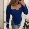Pulover sexy guler pătrat tricotat pentru femei pulover modă cu mânecă lungă toamnă iarnă Topuri subțiri Pulover alb tricotaje 23969
