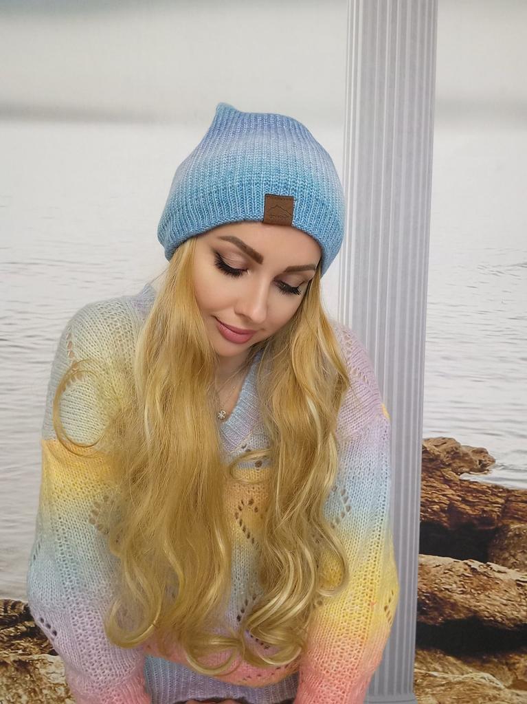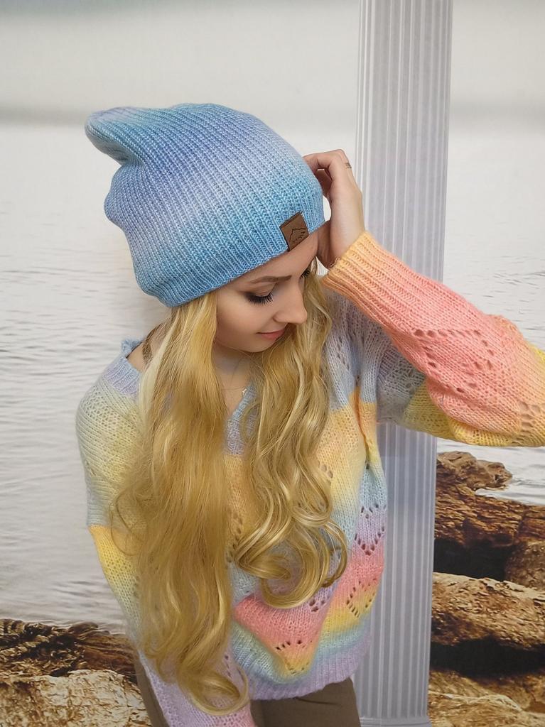 Căciulă de lână curcubeu pentru femei, tricotată, vopsită în cravată