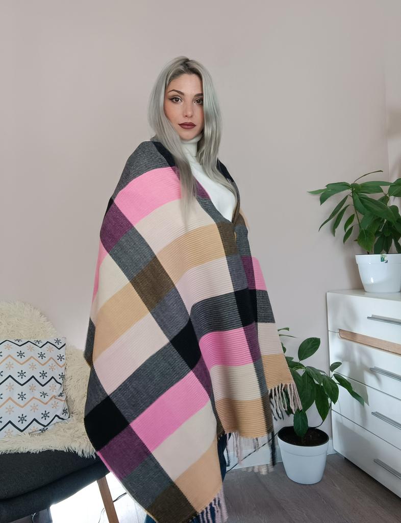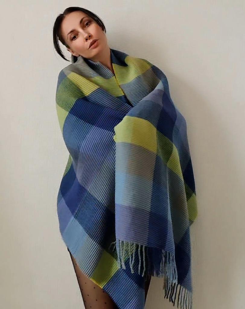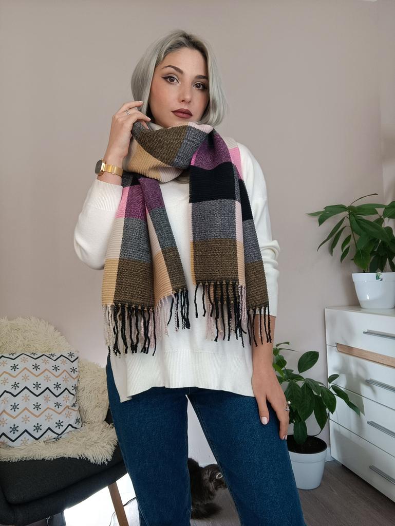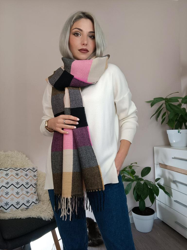 Eșarfă groasă și caldă de iarnă pentru femei noi, design în carouri, șaluri de pashmina, șal de cașmir, eșarfe cu ciucuri tricotate.