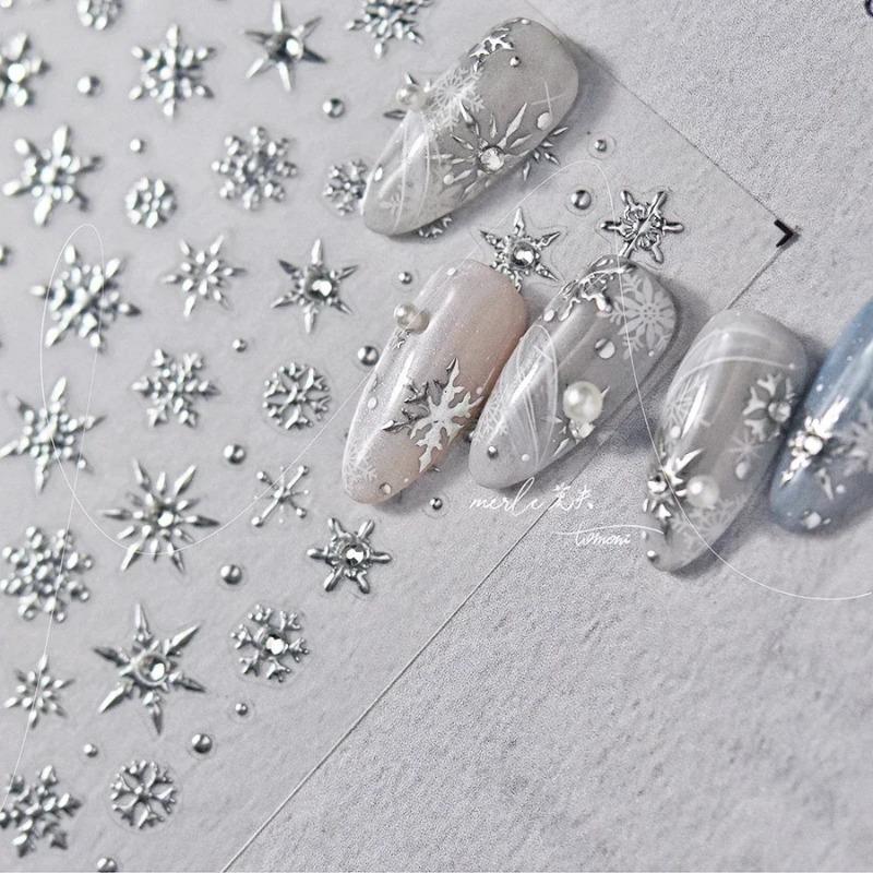 Laser Crăciun Iarnă Fulg de zăpadă Stras strălucitor 5D Relief în relief Auto-adeziv Nail Art Decor Autocolant 3D Decal manichiură