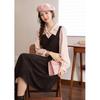 Mishow Rochie de damă French Patchwork 2023 Toamnă Elegantă Talie Mânecă Lungă Rever Fermoar Lateral Rochii Falsă Două Piese MXC45L1585