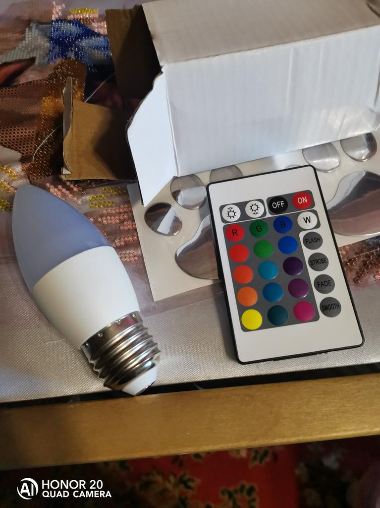 Becul a venit repede. Functioneaza, isi schimba culoarea. Cum se folosește telecomanda încă nu este clar. Poate schimb bateria, se va schimba ceva.