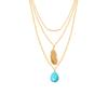 Colier cu pandantiv cu pene turcoaz în mai multe straturi pentru femei în stil boho, cadou cu lanț de pulover