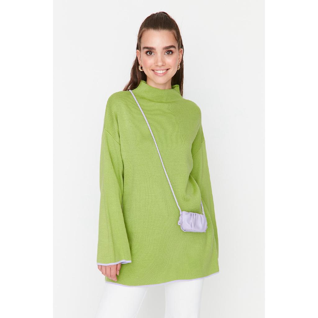 Pulover de tricot cu mânecă spaniolă cu guler verde Tctaw23ak00002