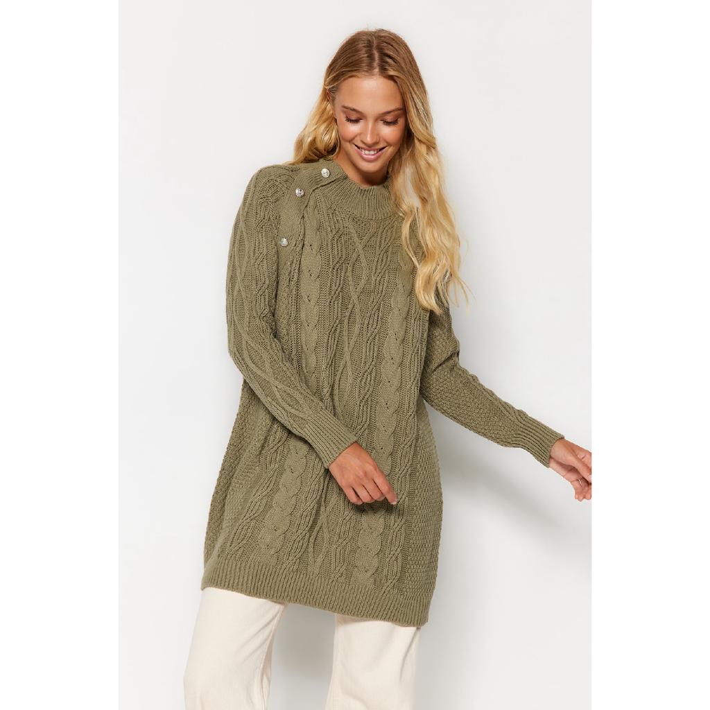 Accesorii kaki Tricotaj împletit cu păr detaliat Pulover Tctaw24ak00165