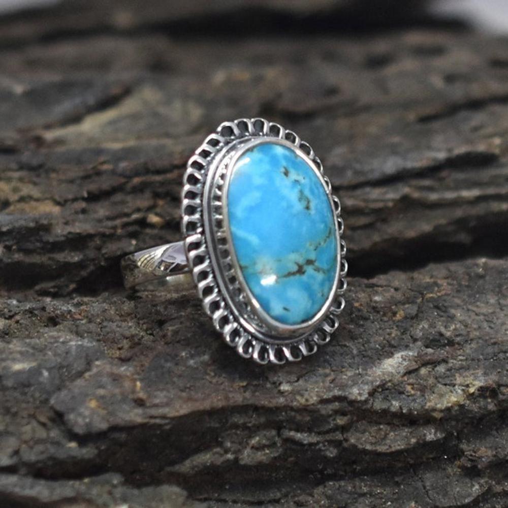 Inel din argint turcoaz tibetan, inel din argint sterling 925 pentru femei, piatră prețioasă turcoaz Boho, inel simplu cu piatră, piatră prețioasă albastră