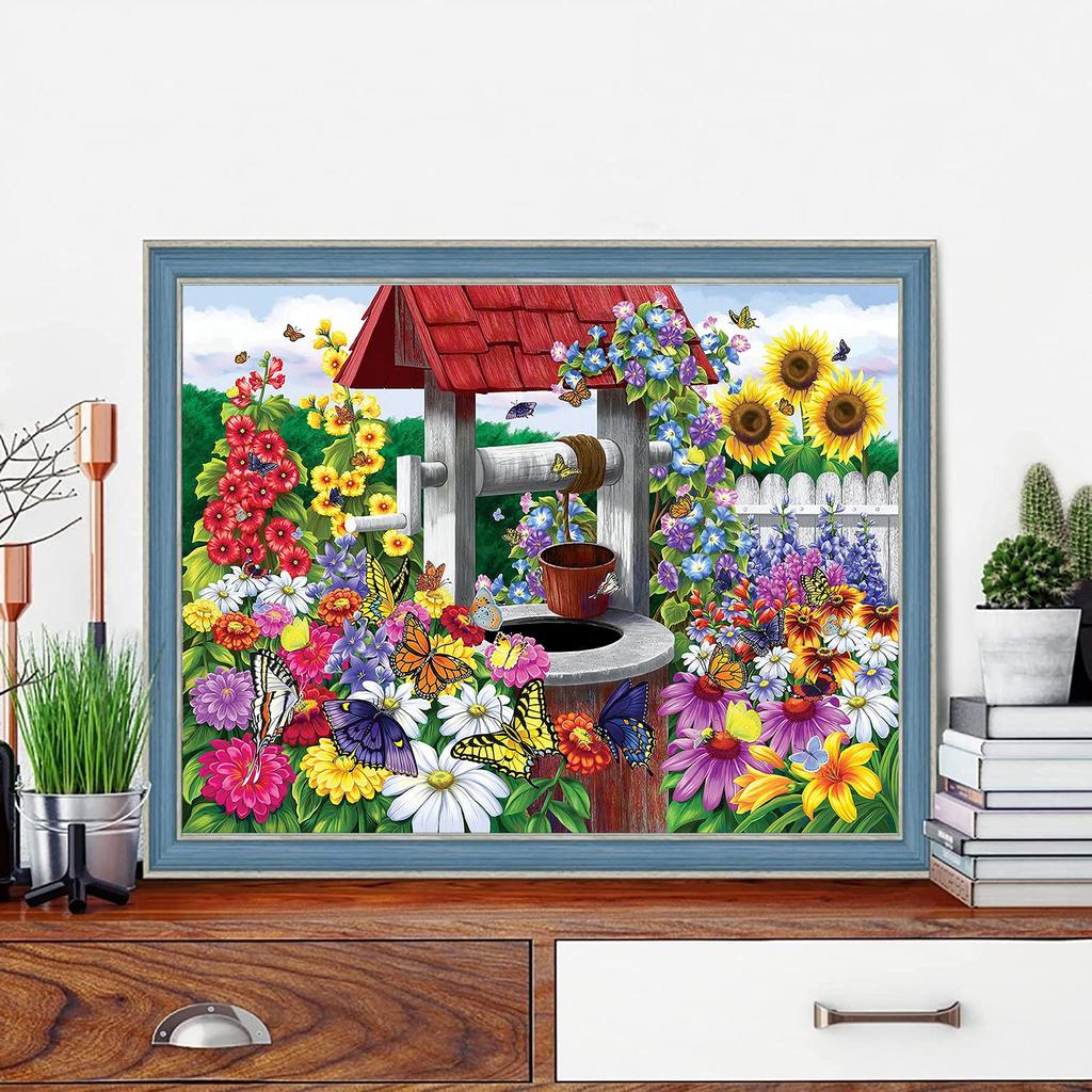 5D DIY pictura cu diamante câmp de flori kit cu punct de cruce mozaic broderie cu diamante trandafir complet rotund burghiu pătrat Decor pentru casa
