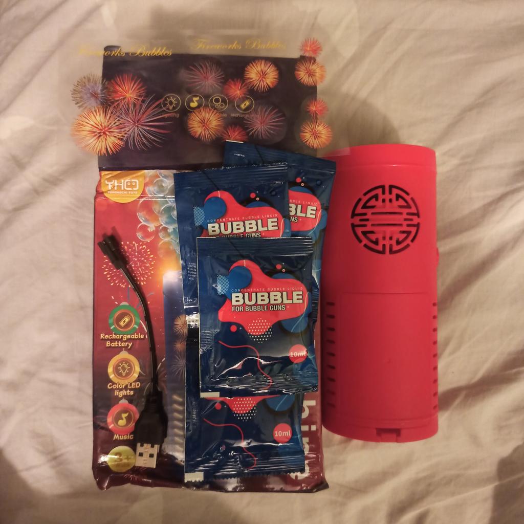 Un lucru foarte mișto, copiii sunt încântați, dar muzica e la nimereală și foarte tare, dar totuși bulele ies, nu trebuie să sufli în special pentru copiii mai mici de 1-3 ani, când chiar și ei varsă soluția, aici problema este rezolvată, s-a pus mai sus și copiii sunt mulțumiți, aleargă Turnau soluție obișnuită, totul funcționează, iar cea care era în set trebuie diluată cu apă