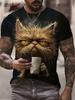 Tricou bărbați cu imprimeu pisică Tricou distractiv cu model animal 3D Tricou casual de vară, cu gâtul O, cu mânecă scurtă