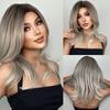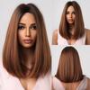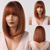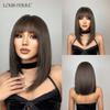 LOUIS FERRE Perucă scurtă de păr castaniu cenușă pentru femei Peruci sintetice maro Ombre, drepte, cu breton, până la umeri, păr natural maro