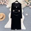 Rochie de petrecere de Crăciun cu dantelă din catifea, în stil Hepburn, cu margele, rochii de seară cu guler pătrat, negru, subțire