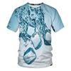 Tricouri cu mânecă scurtă Primăvara Vară Bărbați Blocuri de gheață cu apă Imprimare digitală 3D Gât rotund Tricou de bază pentru bărbați, cu corp largi
