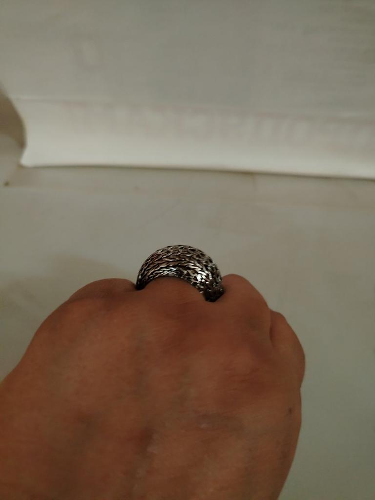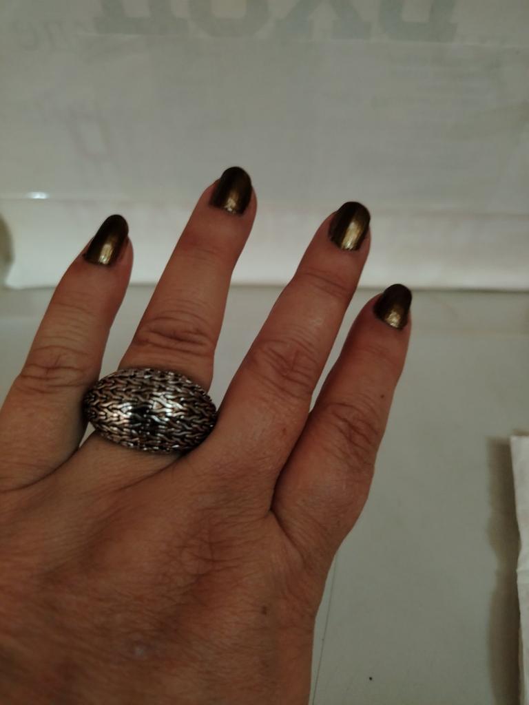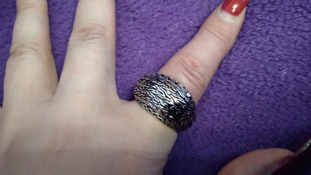 Inel de calitate excelenta! Potrivit pentru iubitorii de boho. Arată ca argint înnegrit. Foarte voluminos și înalt. Îmi place boho, dar pare prea voluminos pe mână. O voi aranja!