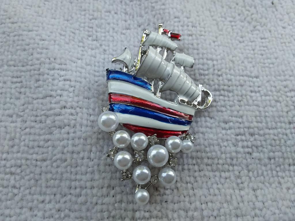 Barcă cu pânze Faux Pearl Strass Incrustat Broșă Pin Femei Rochie Cămașă Insigna