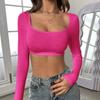 JKAASHDK Moda femei Casual imprimeu culoare solidă primăvară toamnă cu mâneci lungi cu guler pătrat Bluze și cămăși Pulovere