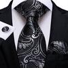 Dibangu Set cravate din mătase pentru bărbați, cu dungi Paisley, cu cravată solidă, butoni