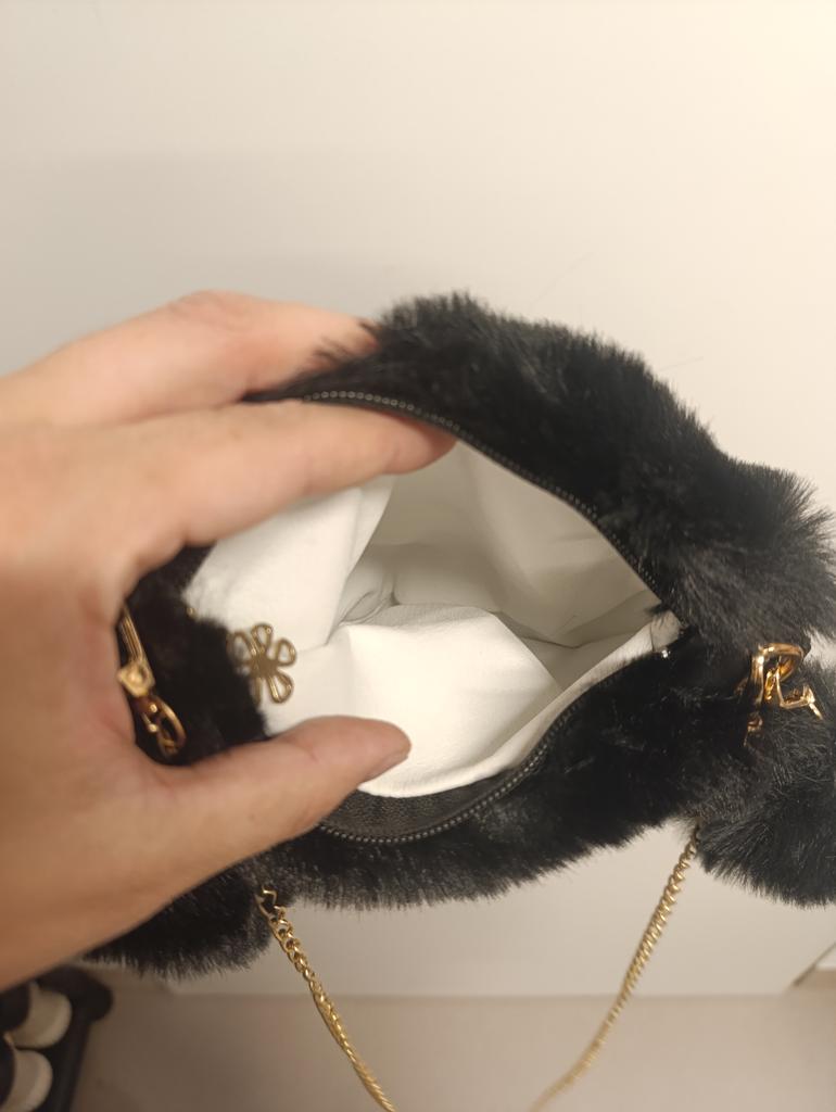 Geanta este pur si simplu minunata, blana moale, placuta, lantul este detasabil, culoarea si marimea corespund pe deplin descrierii. Dar există o discrepanță semnificativă - inserția laterală din piele ecologică din fotografia vânzătorului este de aceeași culoare cu blana și am primit o geantă de mână roz cu o inserție gri.