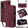 Portofel cu sloturi multiple pentru carduri, cu fermoar, husă magnetică din piele pentru Samsung Galaxy Z Fold 5 cu husă cu funcție de suport