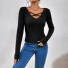 JKASHDK Moda damă ocazional imprimeu în culori uni, primăvară, toamnă, pulovere și mâneci lungi, bluze și cămăși cu decolteu în V