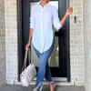 Cămăși cu tunică cu mânecă lungă, ocazională, de modă, bluză albă simplă, elegantă, asimetrică, solidă, pentru dama de birou 30395
