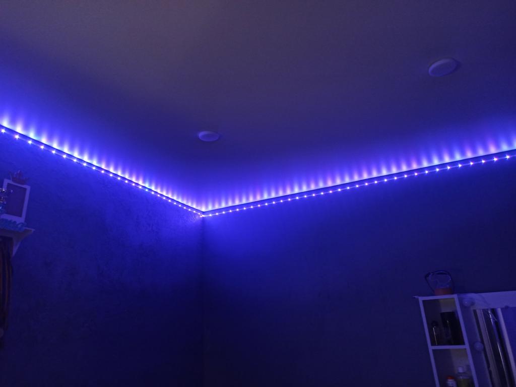 Banda este super, a fost suficientă pentru a lipi tot tavanul pe perimetru. Are multe moduri diferite, multe culori, telecomanda funcționează. Recomand