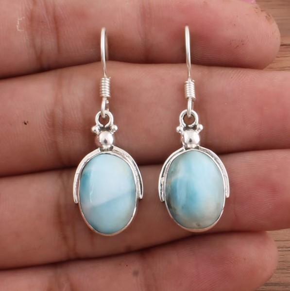 Natural Larimar Silver Earring, Oval Design Silver Earring, 925 Sterling Silver Earring, Oval Gemstone Earring, New Year Gift, Valentine's Day Gift,