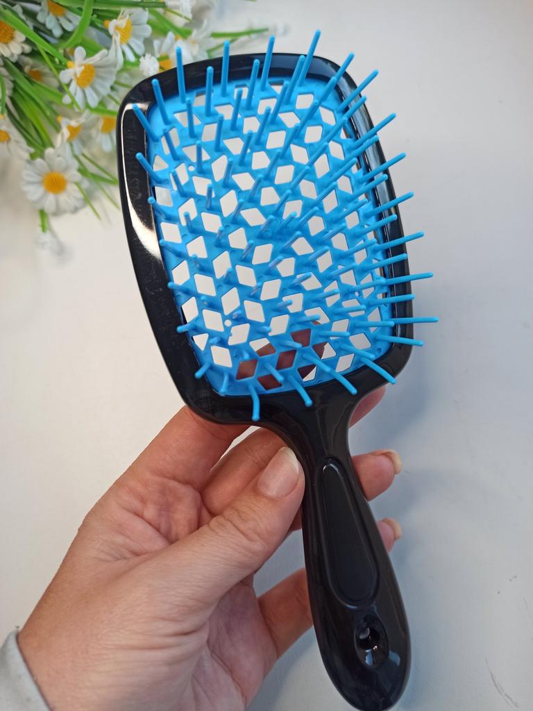 Pieptene de păr pentru masaj. Designul pieptenului este plasă, care accelerează uscarea părului cu un uscător de păr.. Material: plastic. Mâner confortabil. Dimensiune 23,5*8*3 cm Acest pieptene este potrivit pentru toate tipurile de păr. Pieptănă bine părul, nu rupe, nu zgârie capul. A sosit bine ambalat, fara deteriorari. Recomand sa cumperi.