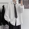 Cămașă Bărbați Stil Preppy Toamnă Iarnă Largă Rever Pulover Bărbați Larg Versatil Culoare Solidă Bluză cu Mâneci Lungi