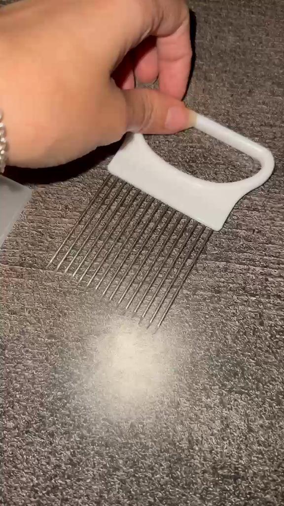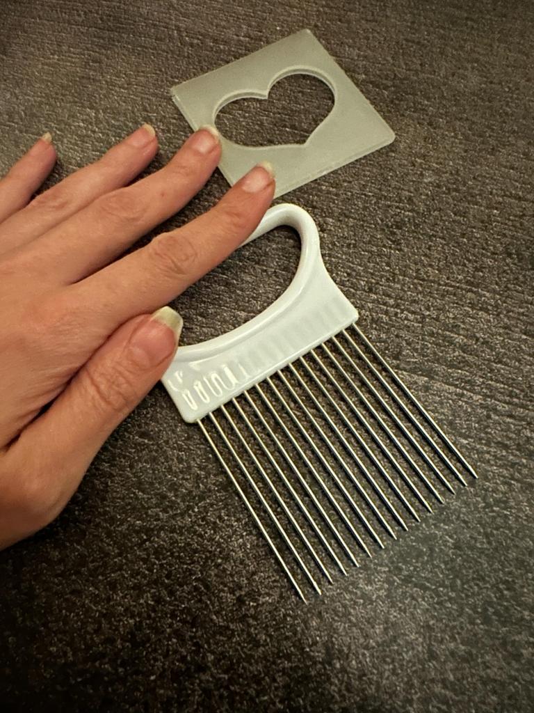 Suport pentru taierea legumelor si fructelor. ⠀ Ușor de utilizat, se lipește în legume sau fructe și îl ține în siguranță. Mai rămâne doar să faceți fante între frigărui Datorită distribuției uniforme a acelor de tricotat și a lungimii acestora, feliile tăiate se dovedesc perfect uniforme.. Suportul vă ajută să nu vă tăiați mâinile.