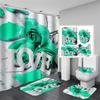 1. țesătură din poliester, costumul cu perdea de duș este fabricat din poliester ecologic, cu efect bun de impermeabilitate. Covorașul de baie/covorul în formă de U anti-alunecare din flanelă este durabil, non-toxic și sigur, ceea ce este cea mai bună alegere pentru familia dvs.