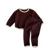 Seturi de ținute de toamnă pentru bebeluși, fetițe, băieți, topuri cu mânecă lungă cu decolteu + + culoare contrastantă/pantaloni cu dungi