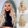 EASIHAIR Peruci lungi ondulate blonde Ombre cu breton Peruci sintetice rezistente la căldură pentru femei Perucă naturală cu rădăcină maro perucă Cosplay păr