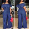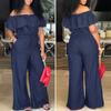 Salopete cu umăr dezactivat pentru femei de vară, cu volane solide, salopete cu picioare late