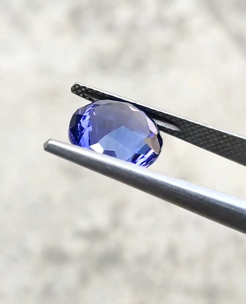 Piatra de sticla naturala cu nuanta de tanzanit frumoasa, piatra fatata Brio lite, dimensiunea mesei, piatra de forma rotunda, 4,60 carate, dimensiune 10x9 mm.