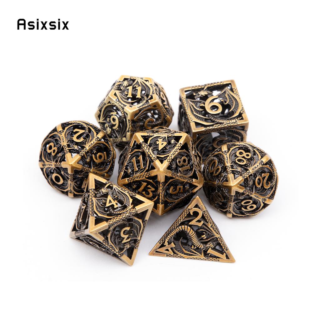 7 buc zaruri metalice Dragon negru auriu, set de zaruri poliedrice metalice goale, potrivite pentru joc de rol RPG, joc de cărți