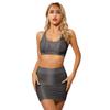 Crop top fără mâneci, casual, din 2 piese, cu set de fuste bodycon