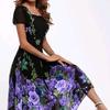 YYFS Moda dame vară primăvară model flori imprimeu mâneci scurte guler pătrat talie mijlocie rochii casual