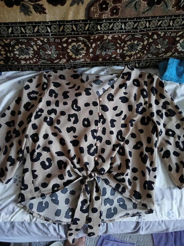 GMXIA Moda damă ocazional de vară imprimeu leopard mâneci jumătăți cu decolteu în V Bluze largi și cămăși din șifon cu șireturi