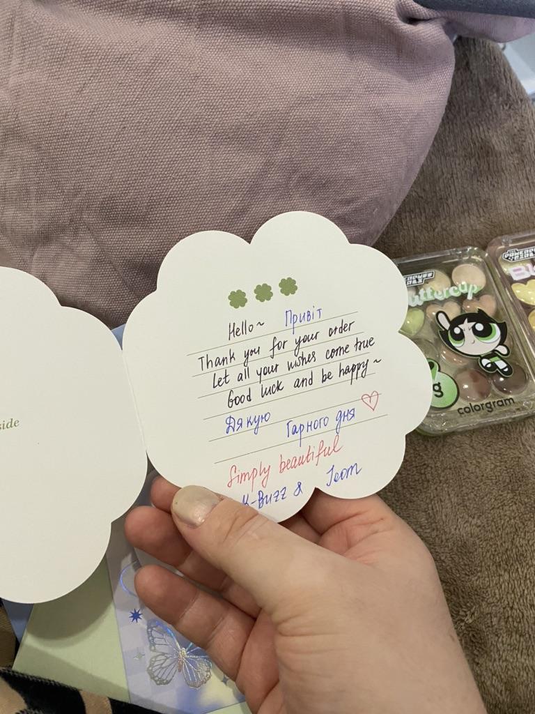 Paleta de fard de pleoape Cologramă !Atenție: conține microplastice/ Atenție! Conține microplastice Omg😭Nota aceea mică este atât de drăguță, mulțumesc mult! Știu că este o călătorie de marketing, dar mă îndrăgesc! Toate produsele comandate prin Nova Poshta cu jum durează foarte mult 🙄 Aștept de mult timp aceste umbre și, în sfârșit, le-am primit. Ador cosmetica coreeană, această paletă nu face excepție - oh, va rezista mult, am încercat-o deja. Dacă voi face un tutorial de machiaj, voi împărtăși aici. Textura în sine - degetele parcă alunecau pe mătase😭N-am mai cumpărat cosmetice decorative bune de foarte mult timp. Ca toți ceilalți, mi-au dat un card personal, e foarte frumos😊 Da, este un truc de marketing, dar am fost sedus cu succes de el) multumesc! An nou fericit!