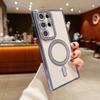 Husă de telefon transparentă, placată magnetică de lux, pentru Samsung Galaxy S24 S23 S22 Ultra Plus, cu sclipici, husă moale de protecție pentru lentile diamantate