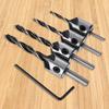 Setul de patru piese include biți pentru găurirea găurilor pilot pentru șuruburi de dimensiuni de 3 mm, 4 mm, 5 mm, 6 mm