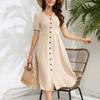 BITCED Rochii de damă de primăvară și vară, temperament și eleganță, culoare solidă, rând de nasturi, cu talie
