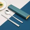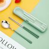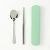 Set portabil de tacâmuri tip buton Coco Story, verde, 1 set, lingură + bețișoare + cutie